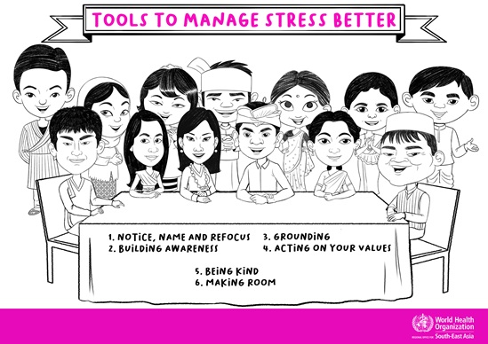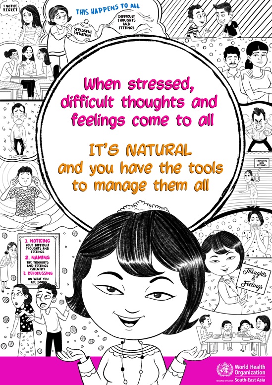 These videos on “Managing Stress Better” are a South-East Asia Regional and creative adaptation of the book, and the videos aim to equip people with practical skills and self-help techniques to help cope with stress. The content of the videos