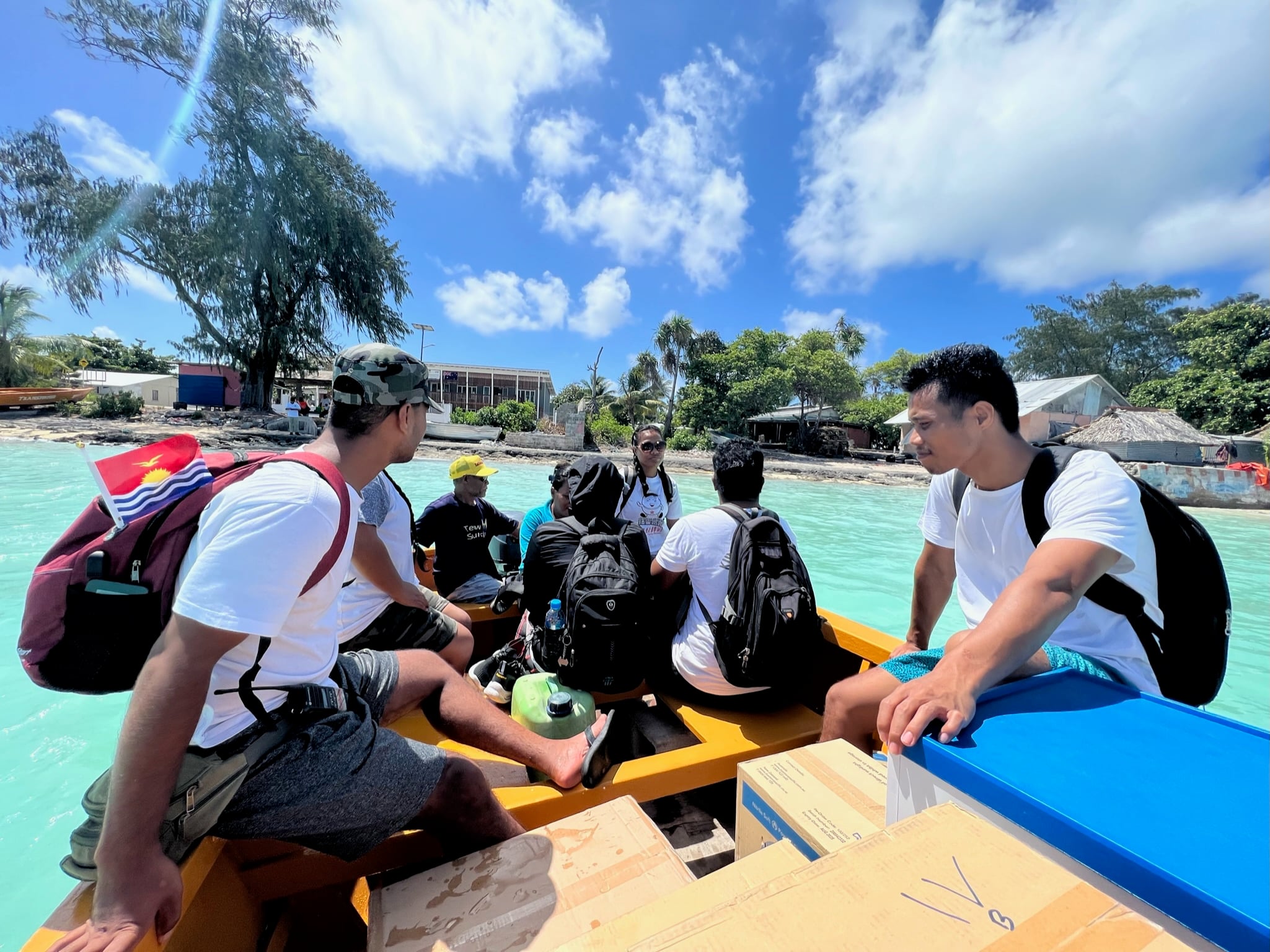 Members of KIRIMAT aboard a boat during a simulation exercise conducted in South Tarawa, Kiribati. Photo: WHO/Sean Casey